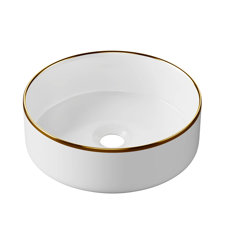 Crafted from premium-quality ceramic, the Harper basin ensures long-lasting durability, easy cleaning, and a smooth, high-gloss surface that resists everyday wear. The metallic gold edge detailing creates an opulent contrast against the pristine ceramic finish, adding a warm, designer accent that elevates your entire bathroom aesthetic.