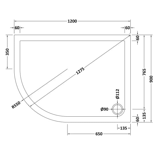 1 x Hudson Reed Offset Quadrant Shower Tray – Left Hand 1200 x 900mm
