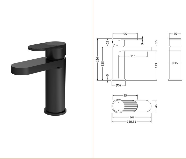 Introduce a bold and contemporary statement to your bathroom with the Nuie Cyprus Binsey Fluted Mono Basin Mixer. This striking tap, presented in a sophisticated matt black finish, is designed to seamlessly blend modern aesthetics with exceptional functionality, making it a standout feature for any basin.