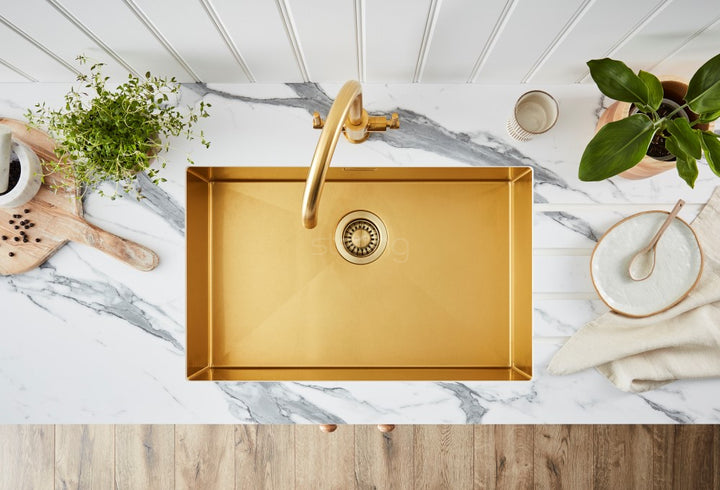 Sterling Volta SB Single Bowl Sink – 650 x 400mm | Dura Brushed Brass | PVD Finish | Undermount / Inset